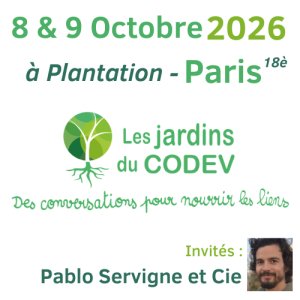 2026-10-08 09:00:002026-10-09 17:00:00Europe/ParisLes Jardins du Codev #2 - CODEV & ENTRAIDE avec Pablo Servigne & CieReservations on : https://www.billetweb.fr/les-jardins-du-codev2