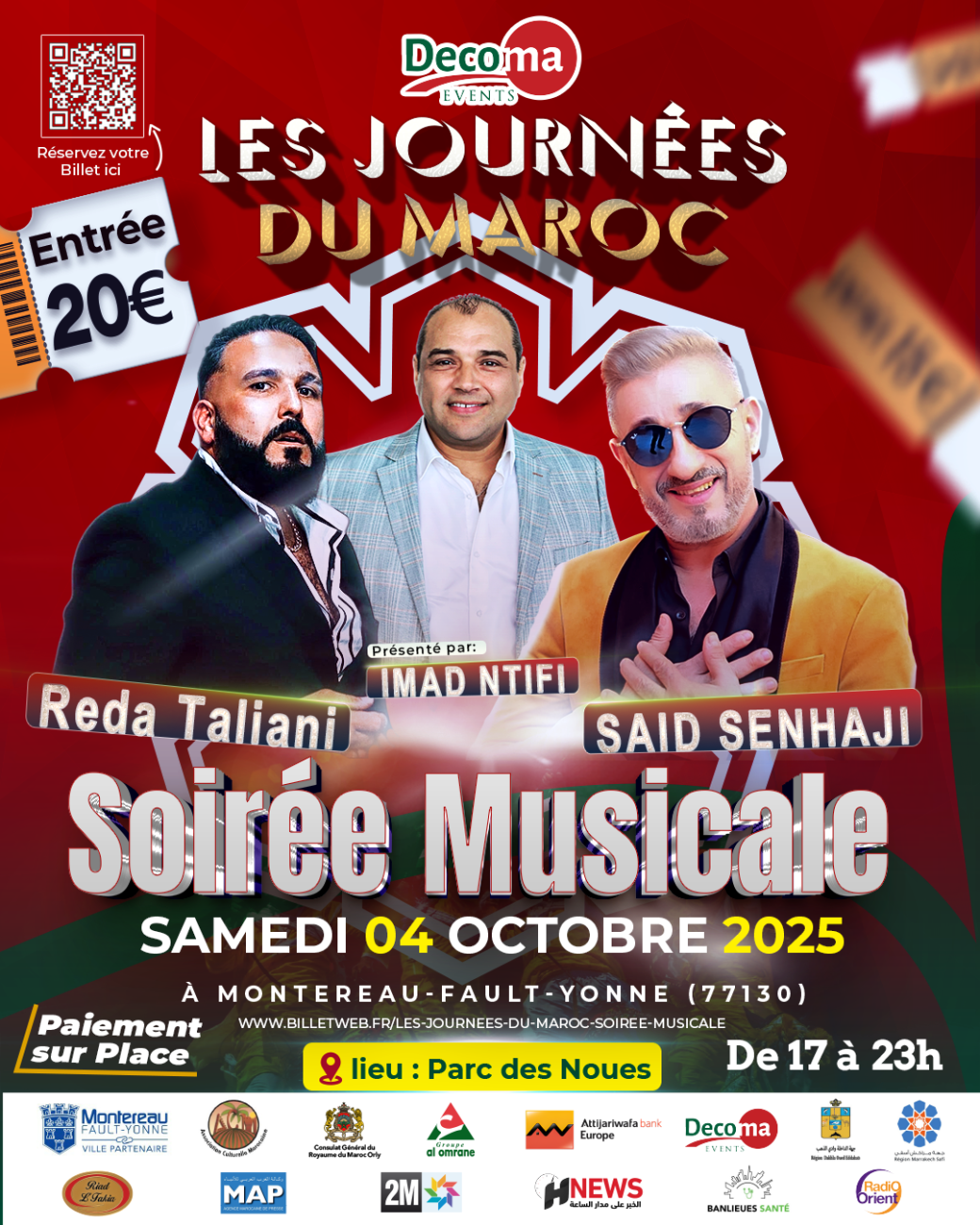 Plongez dans l’ambiance unique des Journées du Maroc avec une soirée musicale exceptionnelle animée par deux grandes stars de la scène maghrébine : Reda Taliani et Saïd Senhaji, présenté par Imad Ntifi.