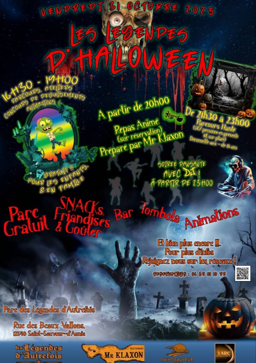 De 21h30 à 23h00 : Parcours hanté (payant : 5€ en prévente, 8€ sur place) déconseillé au moins de 16 ans.