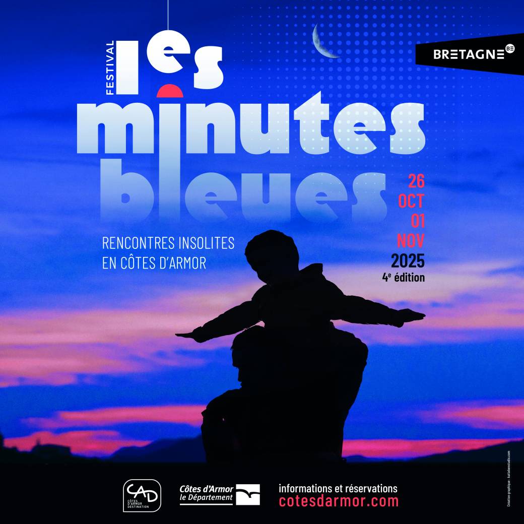 Du dimanche 26 octobre au samedi 1er novembre 2025, la 4ème édition du festival Les Minutes Bleues vous invite à vivre des expériences insolites et inédites, dans plusieurs hauts lieux du patrimoine naturel et culturel des Côtes d’Armor, baignés dans la lumière bleue de l’aube ou du crépuscule. Un événement pour les curieux de tous âges !