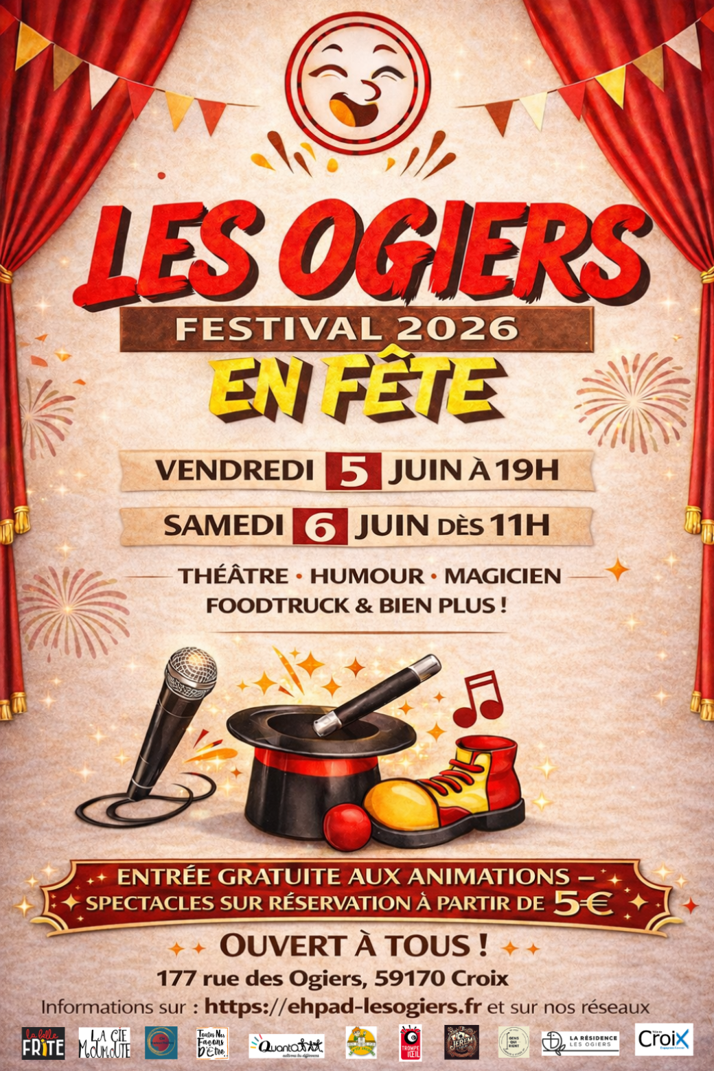 La résidence Les Ogiers à Croix organise le Festival Les Ogiers en Fête 2026, un événement convivial et ouvert à tous. Il se déroulera le vendredi 5 juin à partir de 18h et le samedi 6 juin dès 11h à La résidence Les Ogiers - 177 rue des Ogiers à Croix (59170)