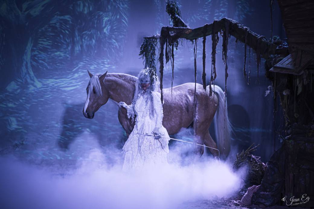 Sur la piste se succèdent dressage en liberté, haute école, voltige équestre, acrobaties aériennes, jonglerie et marionnettes. Porté par le chant lyrique en direct et un univers visuel puissant, chaque tableau fait naître l’émotion et la magie du conte.