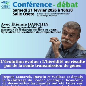 2026-02-21 16:30:002026-02-21 19:00:00Europe/ParisL'évolution évolue : L'hérédité ne résulte pas de la seule transmission de gènesReservations on : https://www.billetweb.fr/levolution-evolue-lheredite-ne-resulte-pas-de-la-seule-transmission-de-genes