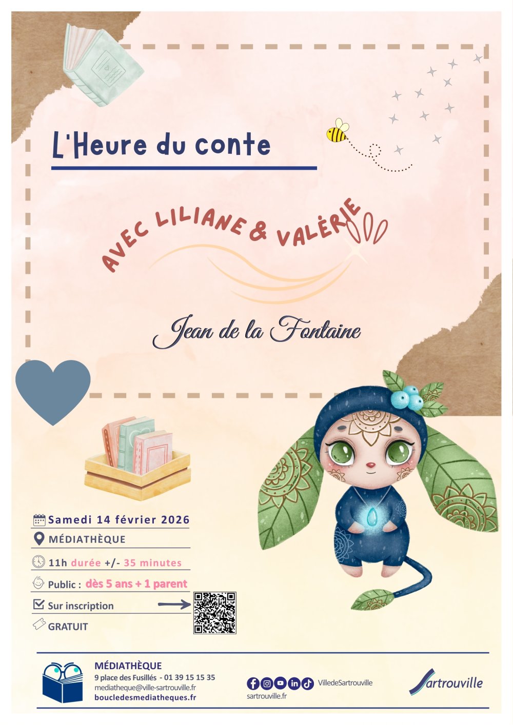 2026-02-14 11:00:002026-02-14 11:35:00Europe/ParisL'heure du conte Spécial Jean de la FontaineReservations on : https://www.boucledesmediatheques.fr/Sartrouville