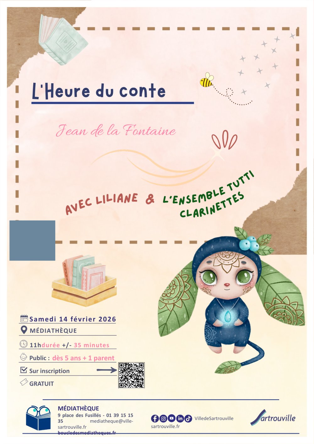 2026-02-14 11:00:002026-02-14 11:40:00Europe/ParisL'heure du conte Spécial Fables de la FontaineReservations on : https://www.boucledesmediatheques.fr/Sartrouville