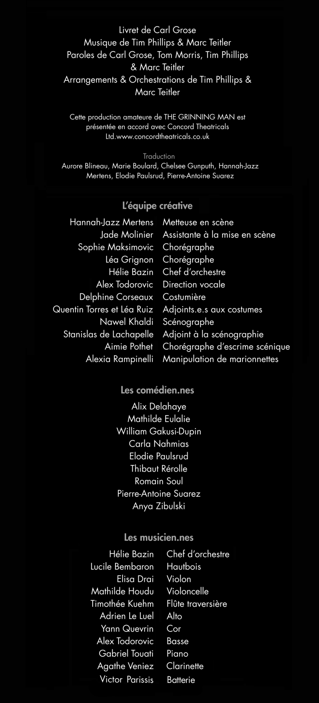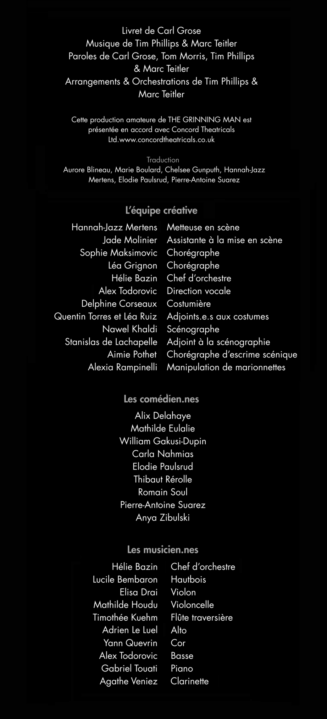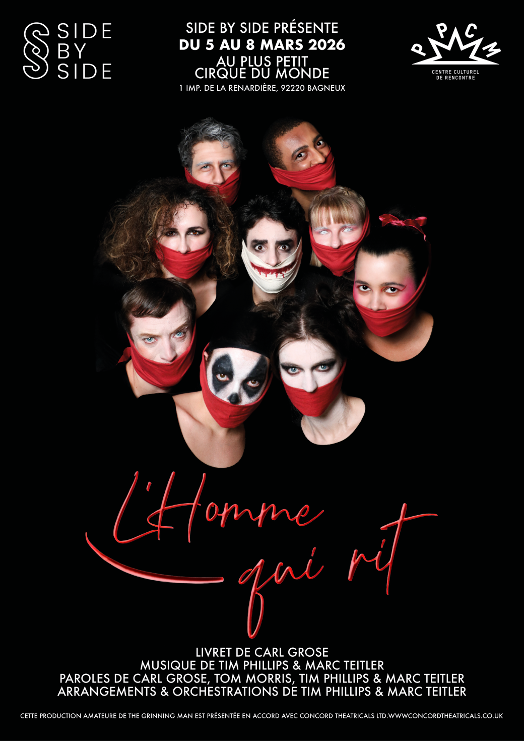 Side by Side présente la comédie musicale L'Homme qui rit, adaptation en français de la pièce The Grinning Man, elle-même adaptée du roman de Victor Hugo.