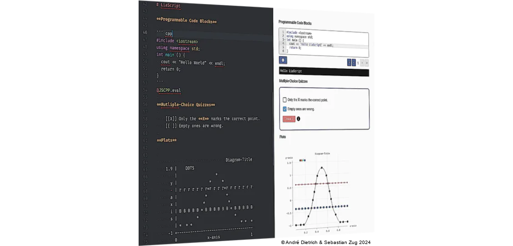 Les REL (Ressources Educatives Libres) sont un mouvement de fond qui vise à faire tomber les barrières dans le partage, la réutilisation et l'adaptation des contenus pédagogiques dans le monde entier. Généreuse ambition mais qui pour devenir réelle doit reposer sur des outils eux-mêmes libres et adaptables. LiaScript a ces qualités. En tant qu'interpréteur web, LiaScript lit du markdown et permet d'afficher le contenu d'un cours à partir d'un fichier texte sur son navigateur. Cette séance comporte une phase pratique d'édition avec l'éditeur de code en ligne de LiaScript. Elle recquiert une connaissance basique de l'écriture en format Markdown.