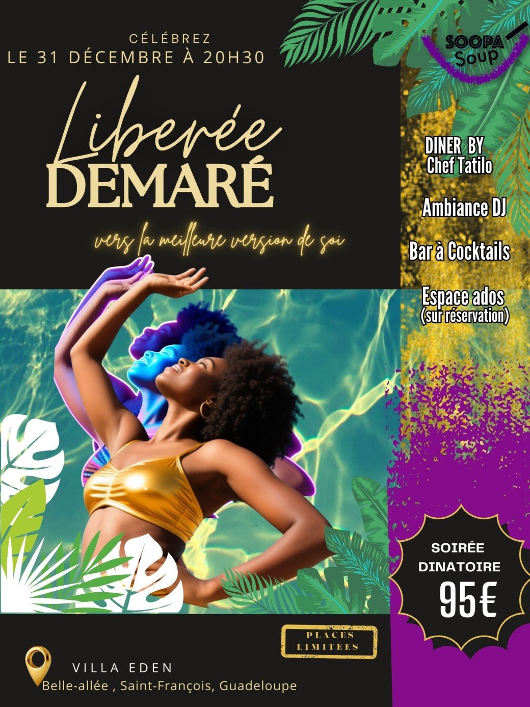 Bien plus qu’une simple soirée de Nouvel An, LIBÉRÉ, DEMARÉ est une ode à la réinvention de soi. Inspiré du « bain démarré », cet événement vous propose une expérience sensorielle immersive, alliant saveurs, musique et partage, le tout dans une ambiance « caribbean chic and casual ».