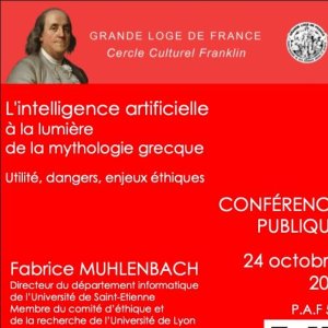 2024-10-24 20:00:002024-10-24 22:00:00Europe/ParisL'intelligence artificielle à la lumière de la mythologie grecqueReservations on : https://www.billetweb.fr/lintelligence-artificielle-perspectives-enjeux-limites
