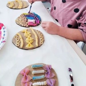 Entre peinture, collage et petites mains curieuses, les enfants explorent les couleurs et les textures en s’amusant. Plus sympa que d’offrir des chocolats, offrez un bel œuf de pâtes !