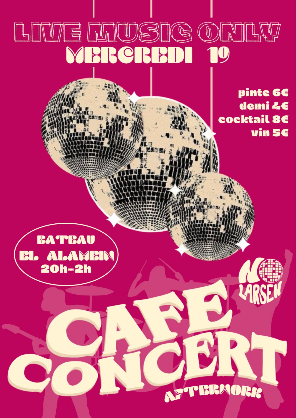 2025-11-19 20:00:00 2025-11-19 23:55:00 Europe/Paris Live Music Only / Cafe Concert afterwork Reservations on : https://www.billetweb.fr/live-music-only-cafe-concert-afterwork -- Live Music Only / Cafe concert afterwork Evenement réservé aux élèves de l'ECE Paris   Tarif adhérent (membres de No Larsen, sous réserve de vérification) : 5€ Tarif non membre : 8€       Bateau El Alamein, Port de la Gare, Paris, France bateau el alamein