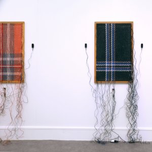 Loops of the Loom, littéralement « boucles du métier à tisser », est un corpus d’œuvres tissées à partir de fils électriques. Ces câbles sont capables de transmettre des signaux audio, si bien que ces tissages sont des pièces sonores. Le projet s’appuie sur la nature intrinsèquement algorithmique du tissage. Chaque tissu est structuré par un pattern récurrent, connu sous le terme d'« armure ». L'armure est le schéma fondateur, l'algorithme qui dicte la manière dont les fils de trame et de chaîne s'entrecroisent. La grille que forment la chaîne et la trame des tissages est interprétée par Cécile Babiole comme une partition rythmique et les motifs colorés sont traduits en séquences sonores selon un protocole systématique. Les couleurs des fils de chaîne et les passages des fils de trame au dessus ou au dessous des fils de chaîne déterminent la nature et la hauteur des sons. Chaque tissage diffuse une courte composition vocale originale composée, « performée » et enregistrée par l’artiste, car le choix d’une voix féminine semble cohérent avec l’histoire et la pratique du tissage dès les origines. La figure de la grille est au centre du travail. Son inspiration se réfère autant aux tissages issus des sociétés matriarcales préhistoriques qu’à ceux présents dans les mémoires vives magnétiques incorporant des tores de ferrite des ordinateurs des années 1955 à 1975. Avec Loops of the Loom Cécile Babiole fait confluer plusieurs axes de recherche qu’elle explore depuis des années : technologie, art plastique, art sonore, langage et genre.