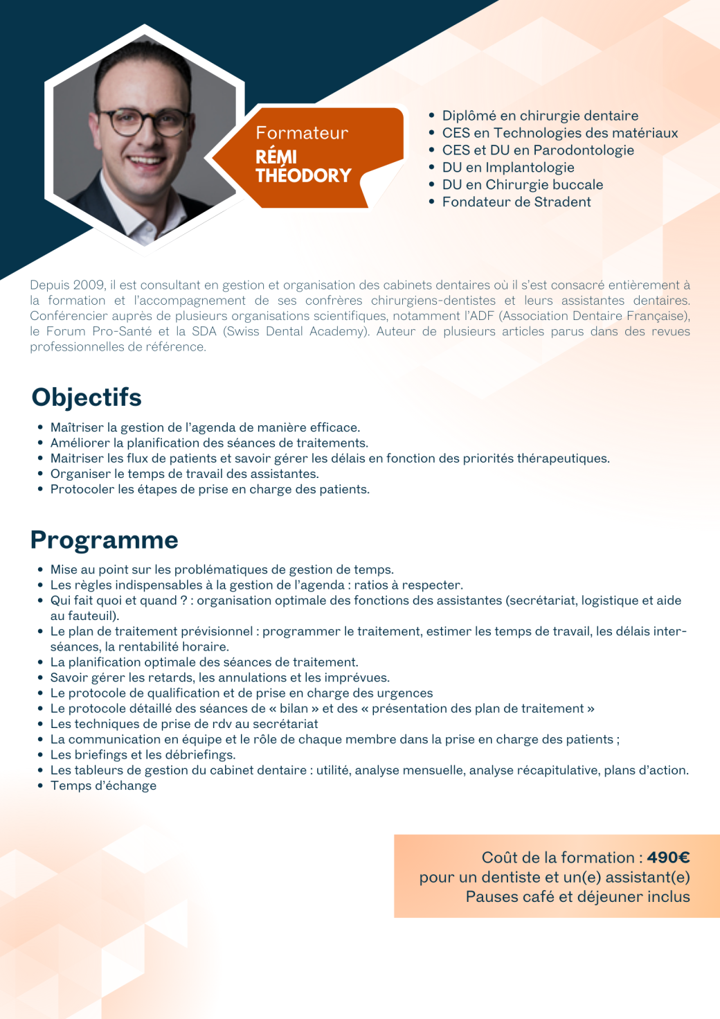 Reservations on : https://www.billetweb.fr/lorganisation-en-cabinet-dentaire --