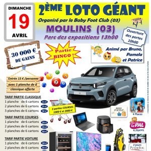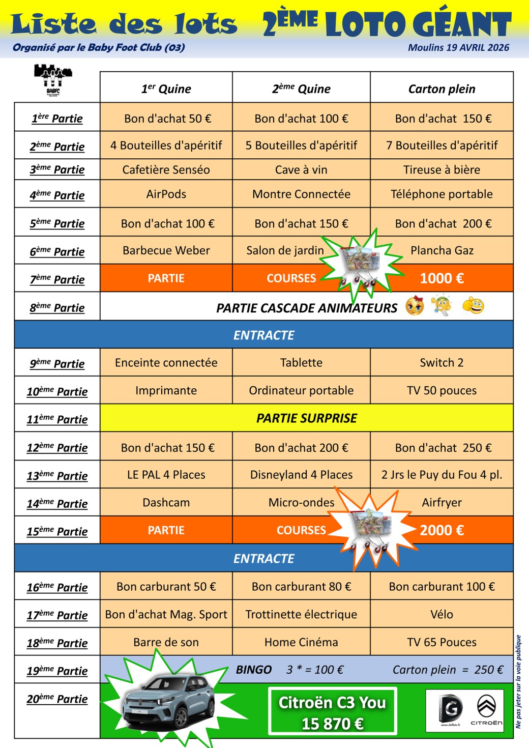 Le club de baby-foot de Bourbon-l'Achambault organise le dimanche 19 avril 2026 à partir de 13h00 son 2ème loto.