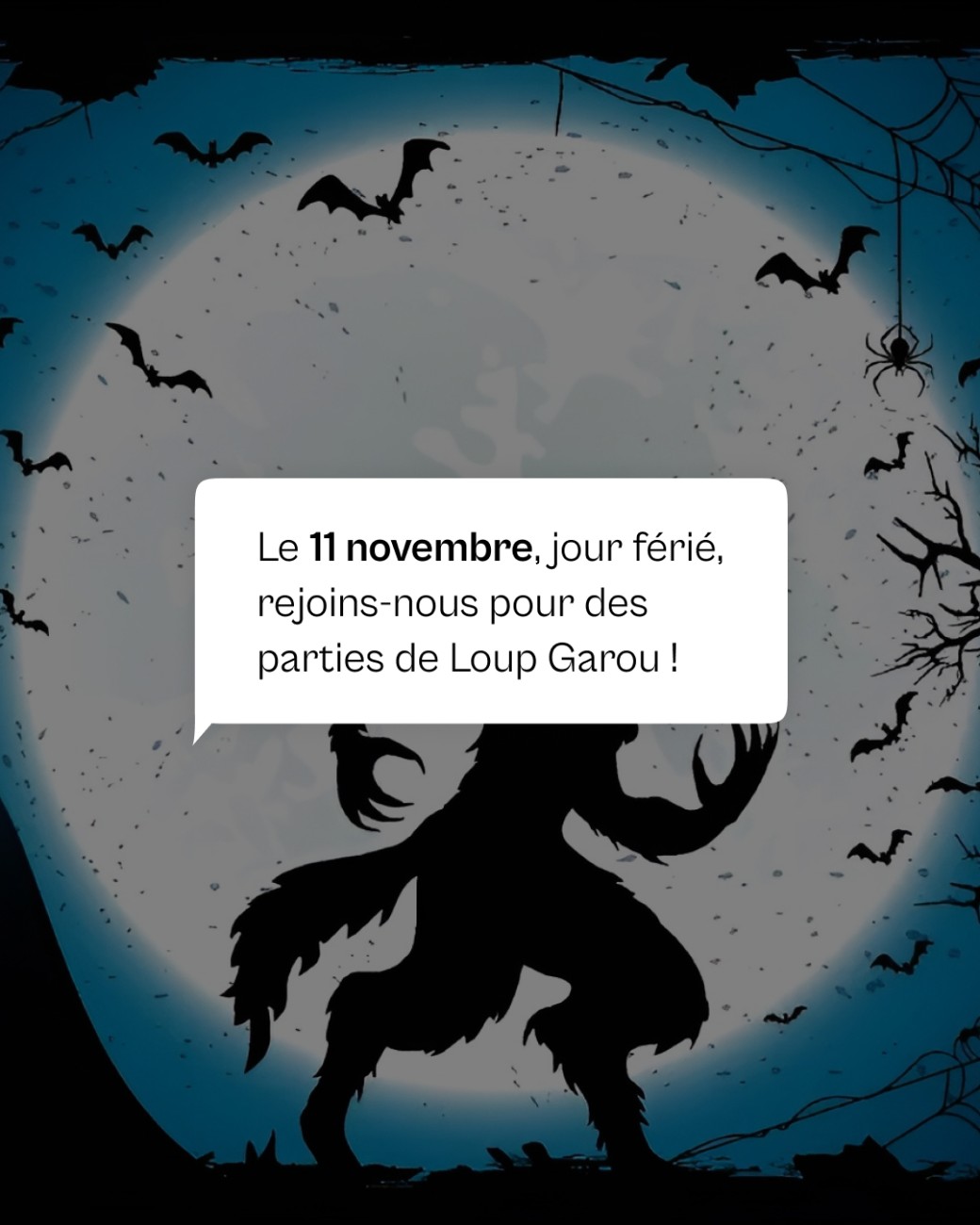 2025-11-11 15:00:002025-11-11 20:00:00Europe/ParisLOUP GAROUReservations on : https://www.billetweb.fr/loup-garou15