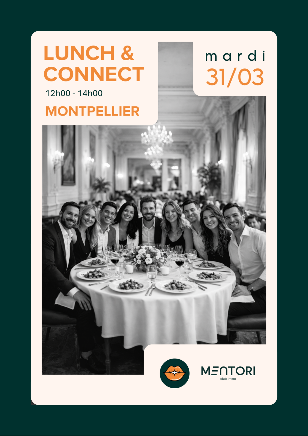 2026-03-31 12:00:00 2026-03-31 14:00:00 Europe/Paris Lunch & Connect - Nord/Sud Reservations on : https://www.billetweb.fr/lunch-montpellier-9-03 -- Mentori se structure autour de deux rendez-vous mensuels pensés pour créer de vraies connexions et des échanges utiles. La Business & Wine, en soirée, et le Lunch & Connect, au format déjeuner.   Le Lunch & Connect se déroule de 12h à 14h, autour d’un repas assis, limité à 25 participants pour préserver la qualité des échanges. Le format est simple et efficace Entrée, plat et dessert se font avec des rotations de tables afin que chacun puisse rencontrer l’ensemble des participants et échanger en profondeur.   Ces déjeuners sont toujours rythmés par une animation ou un atelier, pensé pour lancer les discussions, répondre à des questions concrètes et apprendre réellement à se connaître au-delà des cartes de visite.   Un moment convivial, structuré et fluide, pour créer des liens durables, partager des expériences et faire émerger des opportunités naturelles, dans un cadre propice aux échanges de qualité. - Mentori I Club Immo