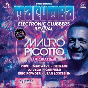 Un Line-Up d’exception avec Mauro Picotto, DJ Pure et Madwave, ainsi que les résidents emblématiques du Macumba : Deerage, Eric Powder, DJ Vega, Garfld et Jean Lostebien.