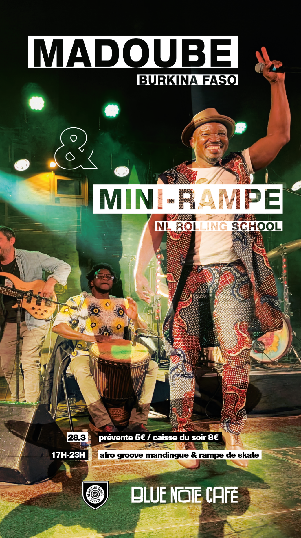 Nous voilà de retour pour mettre une bonne dose de chaleur sous les hospices de l'afro groove avec MADOUBE Project ET pour pimenter le tout, on rameute les amis de la NL Rolling School et leur rampe de skate magique à l'intérieur du Blue Note.