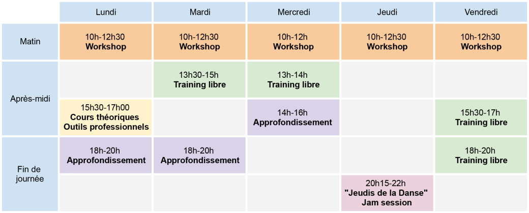 Sessions hebdomadaires de 22 heures par semaine :