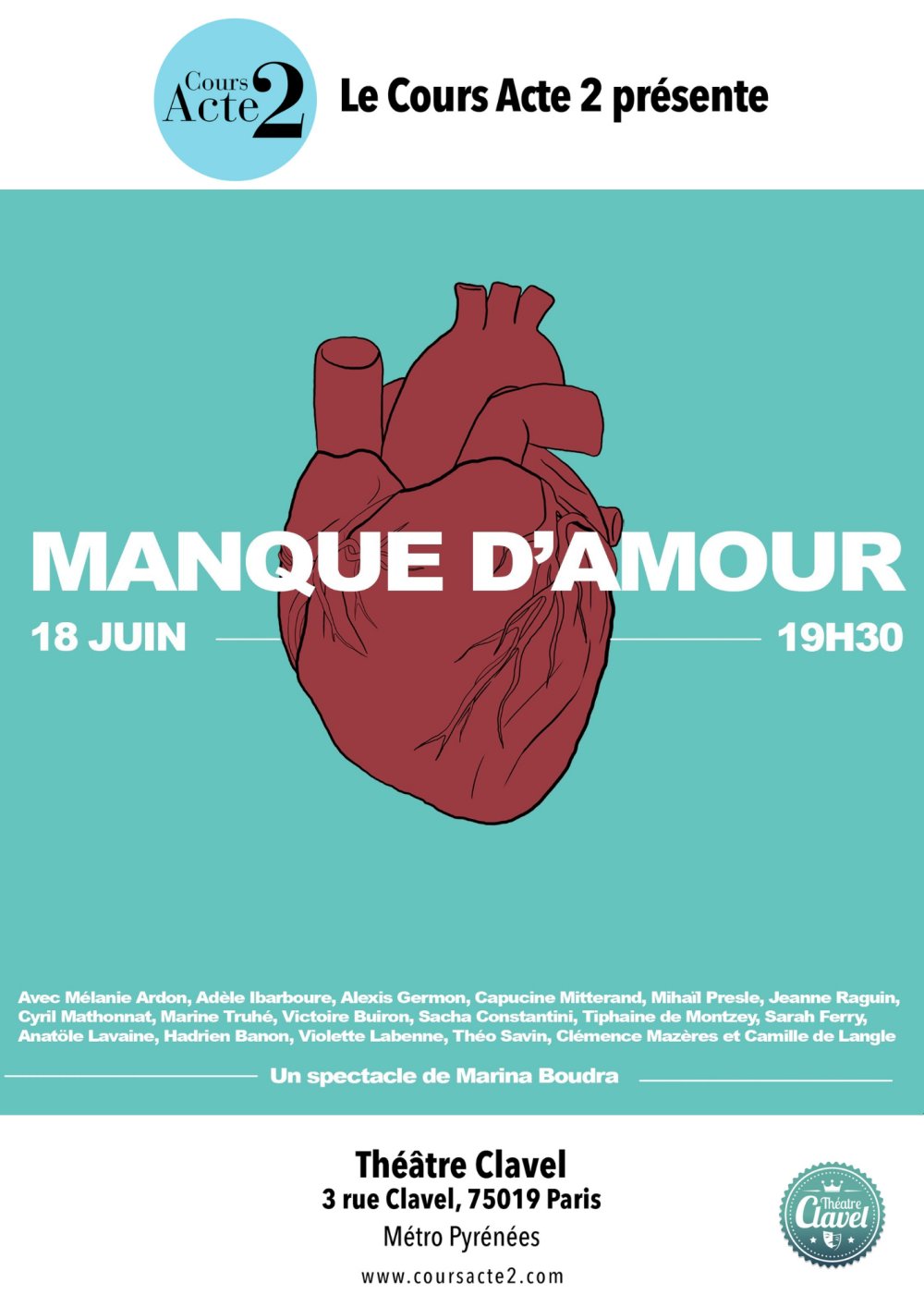 Avec : Mélanie Ardon, Hadrien Banon, Victoire Buiron, Sacha Constantini, Sarah Ferry, Alexis Germon, Adèle Ibarboure, Violette Labenne, Cyril Mathonnat, Clémence Mazères, Capucine Mitterand, Tiphaine de Montzey, Mihaïl Presle, Jeanne Raguin, Theo Savin, Marine Truhé, Camille Villermain-Lécolier