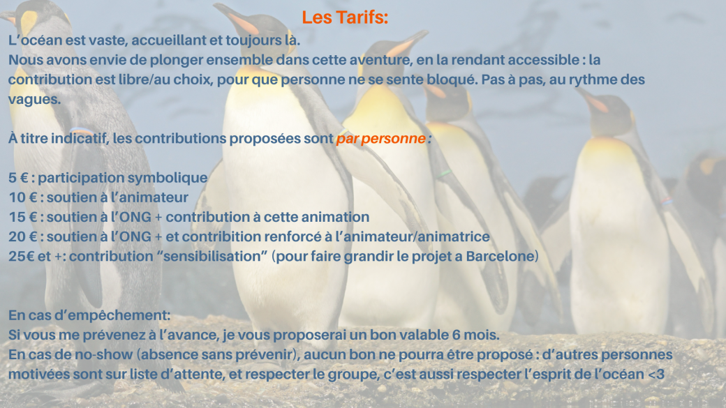 À Barcelone, Lionel, plongeur et marin professionnel, vous attendra en face de l’International Restaurant Bar de Poblenou. Nous marcherons le long des quais pour une expérience océanique les pieds sur terre, d’une durée comprise entre 1h30 et 2h. Ca sera la première !