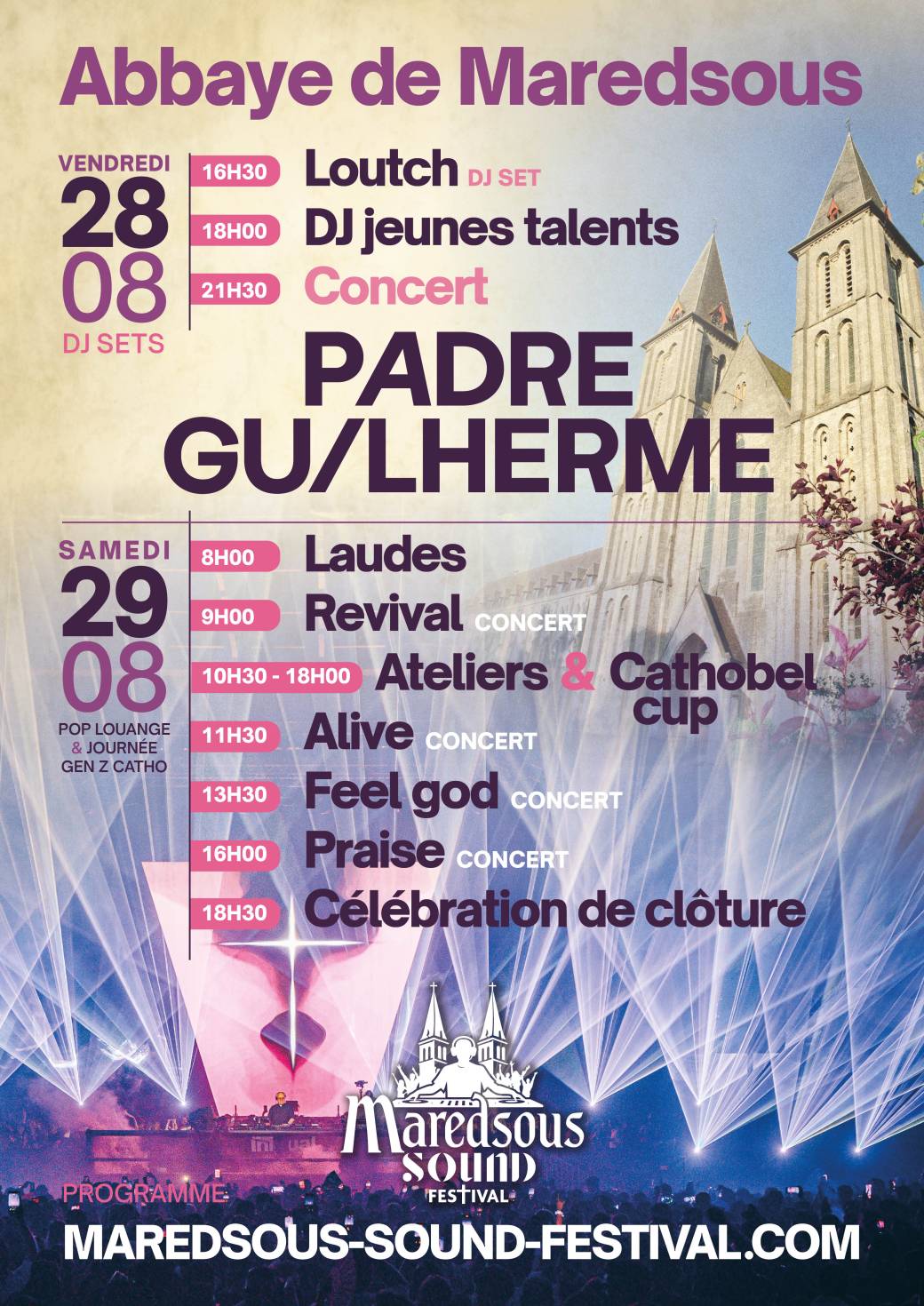 2026-08-28 16:00:00 2026-08-29 20:00:00 Europe/Brussels Maredsous Sound Festival Reservations on : https://www.billetweb.fr/maredsous-sound-festival1 -- Le Maredsous Sound Festival est un événement musical et spirituel destiné aux jeunes, organisé au cœur de l’abbaye de Maredsous. À travers concerts, rencontres et moments de prière, il propose une expérience à la fois festive, culturelle et porteuse de sens. Ce projet s’inscrit dans la volonté de la communauté monastique d’ouvrir l’abbaye et de rassembler les jeunes générations. Les bénéfices du festival contribuent à la préservation du patrimoine, notamment dans le cadre du projet Basilique 2030. Abbaye de Maredsous, Rue de Maredsous 11, Anhée, Belgique Maredsous sound festival