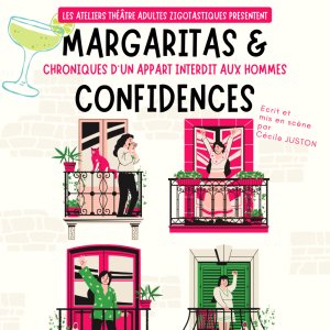 Les adultes de la Troupe 1 menée par Cécile JUSTON chez Zigotastiques vous proposent cette année une création originale : Margaritas & Confidences, chroniques d'un appartement interdit aux hommes.