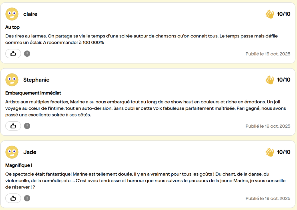Dans ce one woman musical show, Marine vous embarque dans ses nombreuses vies et passions.