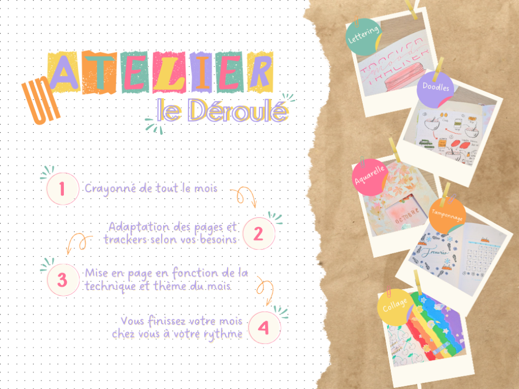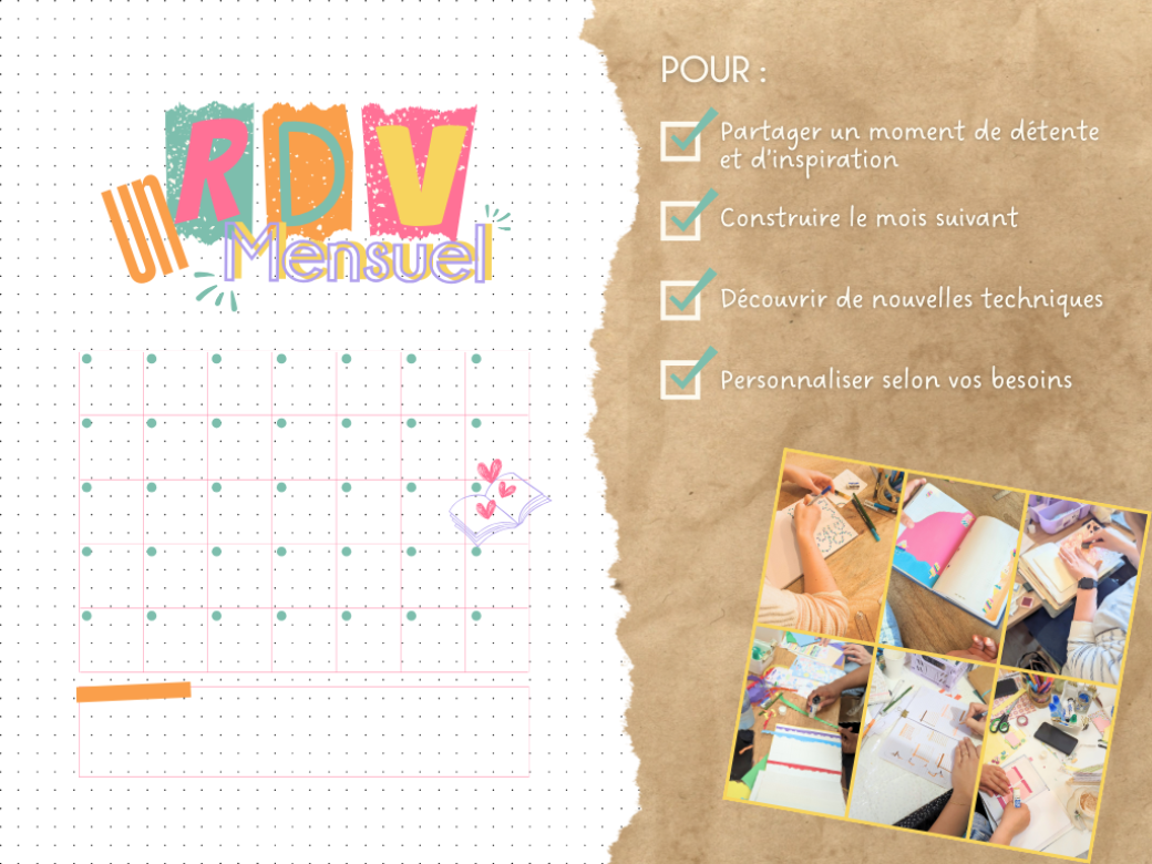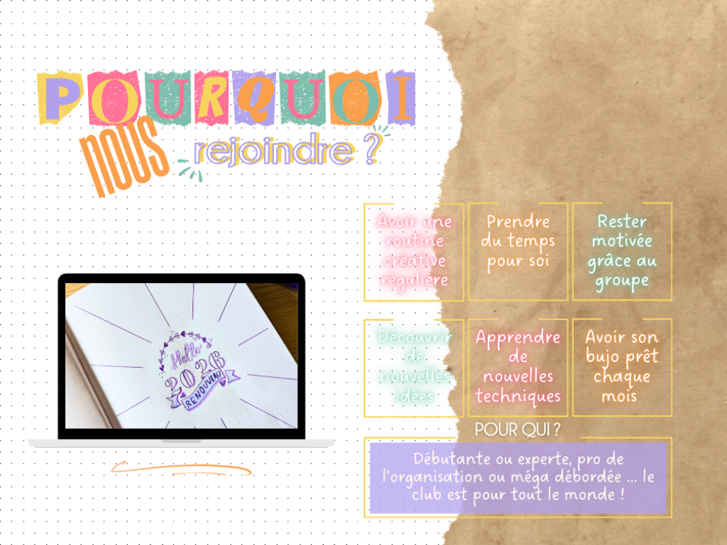Professeur des écoles de mon premier métier, je suis également passionnée par la pédagogie et la transmission auprès de tout public. Depuis 2020, je donne des ateliers créatifs pour petits et grands en tout genre et c'est avec joie que je te retrouve aujourd'hui pour te proposer des ateliers de Bullet Journal en visio 1 fois par mois en intégrant le Club Bujo pour t'organiser tout en créant à ton rythme.