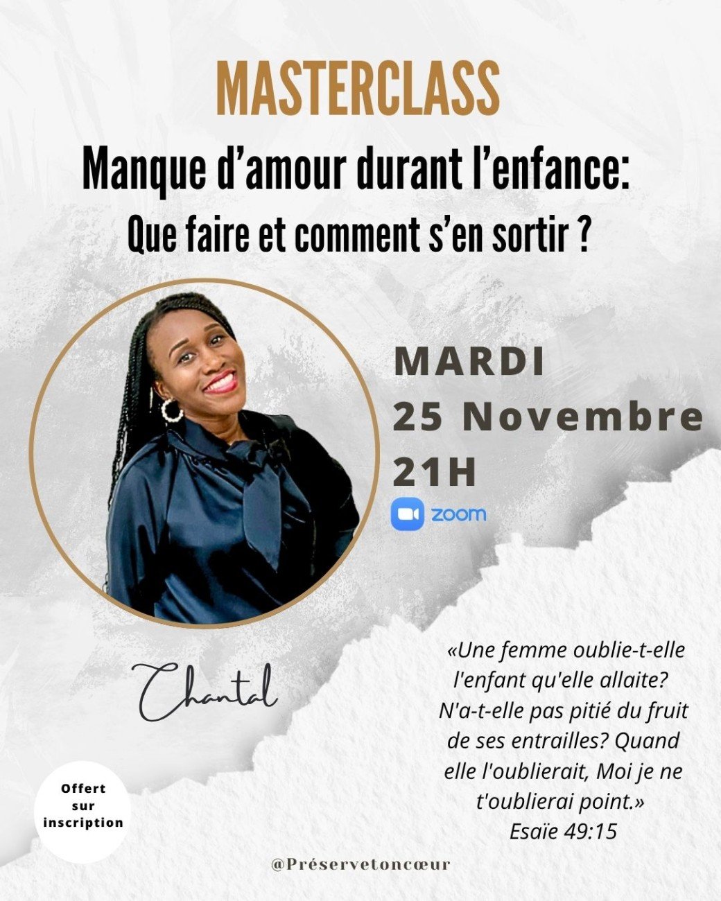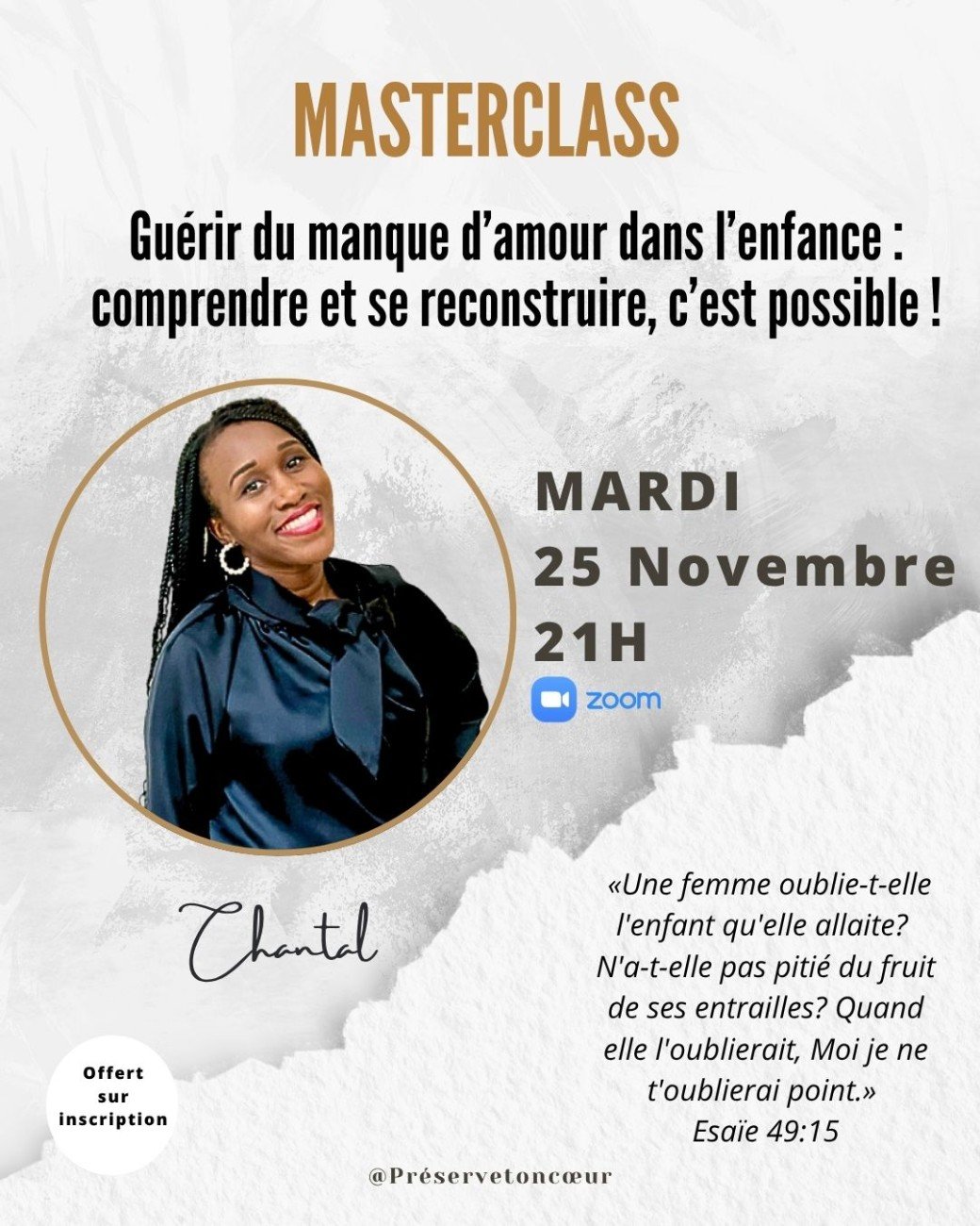 Bienvenue à la MasterClass Guérir du manque d'amour durant l'enfance.