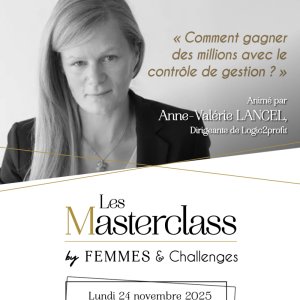 Lors de cette Masterclass, Anne-Valérie LANCEL, consultante en contrôle de gestion et dirigeante de Logic2profit, vous dévoilera comment transformer vos données financières en décisions gagnantes.