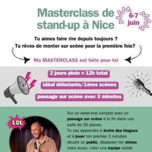 2026-06-06 10:00:002026-06-07 21:00:00Europe/ParisMasterclass de stand-up NiceReservations on : https://www.billetweb.fr/masterclass-de-stand-up-nice