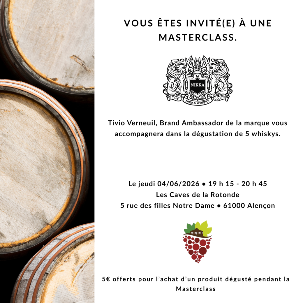 L'achat d'une place vous donne droit à une remise de 5€ pour l'achat d'un produit dégusté à l'issue de la masterclass.