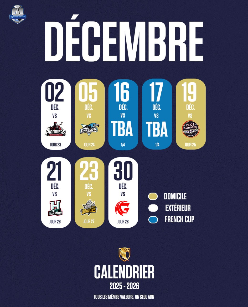 Découvrez l’intensité du hockey sur glace professionnel avec les Aigles de Nice qui affrontent Angers, Champions de la Coupe de France 2025, à la Patinoire Jean-Bouin à l'occasion de ce MATCH GALA.