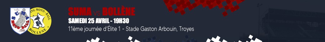 - Championnat de France Élite 1 - 11ème journée (décalée) : SUMA vs SMB BOLLÈNE à 19h30