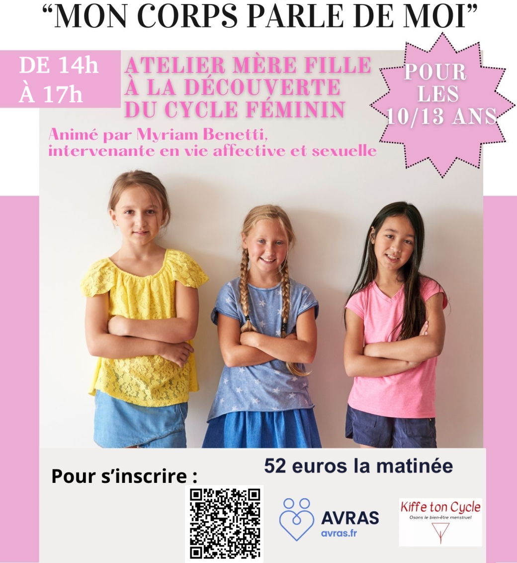 2026-03-21 14:00:002026-03-21 17:00:00Europe/ParisAtelier duo Mère/Fille : "Vivre la puberté, kiffe tes premières règles" (10/13 ans)Reservations on : https://www.billetweb.fr/matinee-duo-mere-fille-vivre-la-puberte-kiffe-tes-premieres-regles-10-13-ans