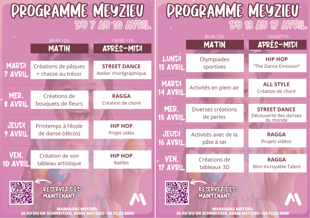 - Tarif semaine = votre enfant participe toute la semaine, matins et après-midis.