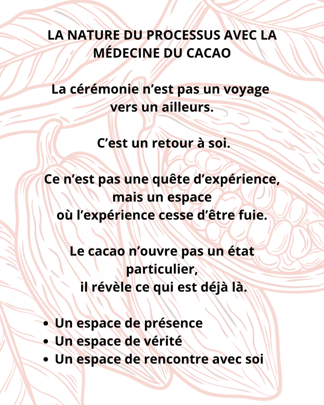 Ce processus est pensé comme un espace de traversée profonde et douce de ce qui a besoin d'être traversé en toi.