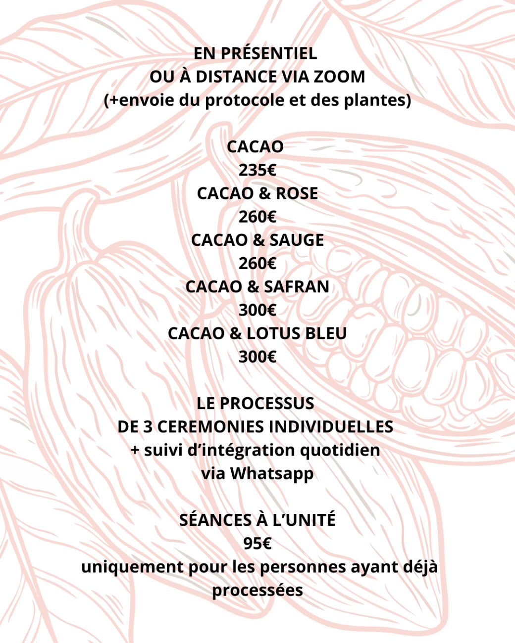 Processus possible en ligne via Zoom (envoie des médecines en supplément)