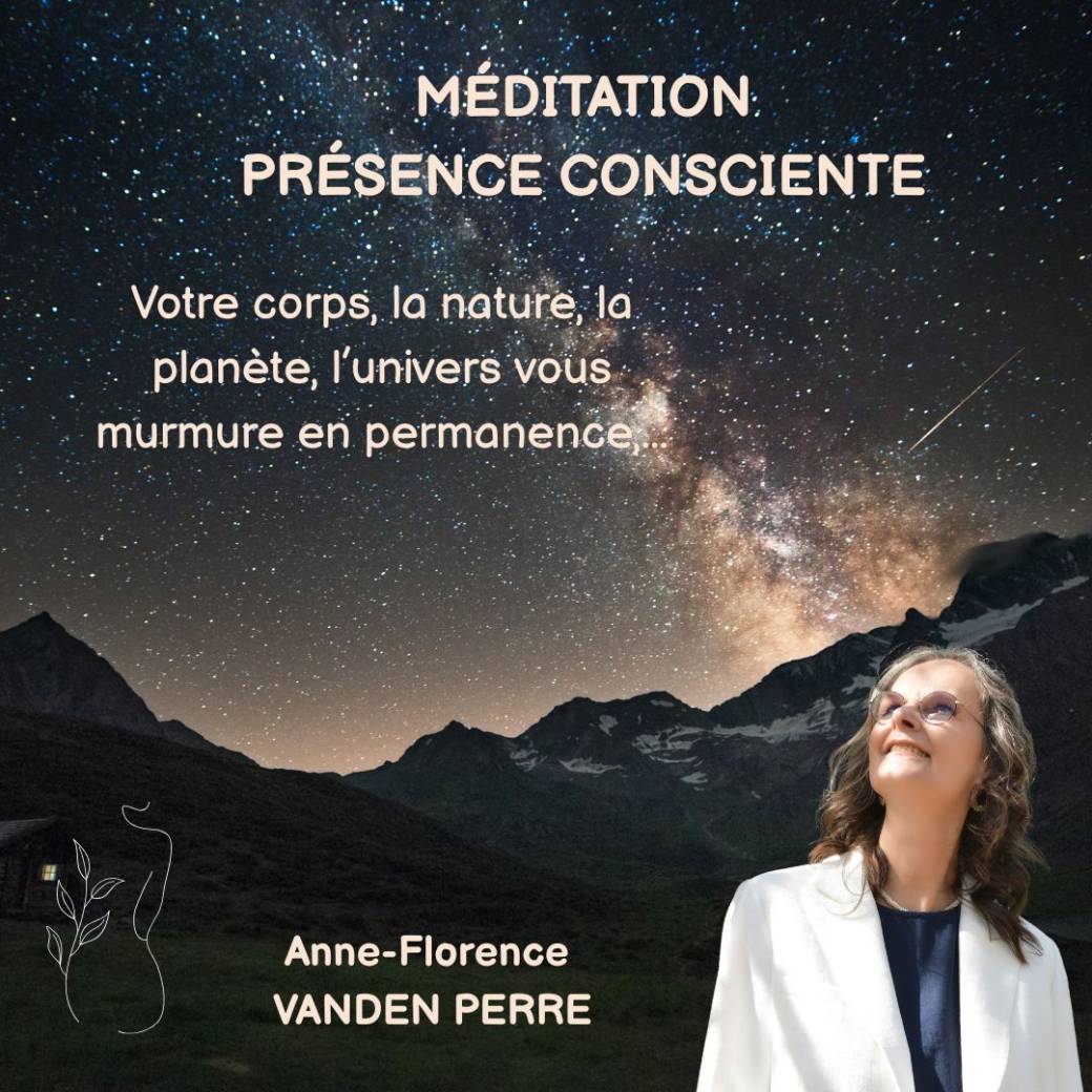 Les méditations Présence Consciente d'Anne-Florence Vanden Perre vous invite à vous connecter intimement avec vous-même et à augmenter votre présence à votre corps physique mais également vos corps énergétiques et leur interaction avec votre environnement.