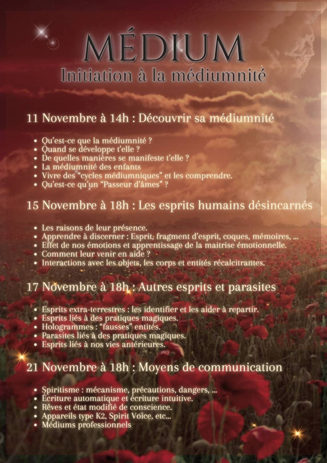 2023-11-11 00:00:002024-12-31 00:00:00Europe/ParisMEDIUM - Initiation à la médiumnitéReservations on : https://www.billetweb.fr/medium-initiation-a-la-mediumnite