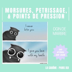 2025-04-30 20:00:002025-04-30 22:00:00Europe/Paris[MER 30 AVRIL] Morsures, pétrissage & points de pressionReservations on : https://www.billetweb.fr/mer-22-janv-morsures-petrissage-points-de-pression