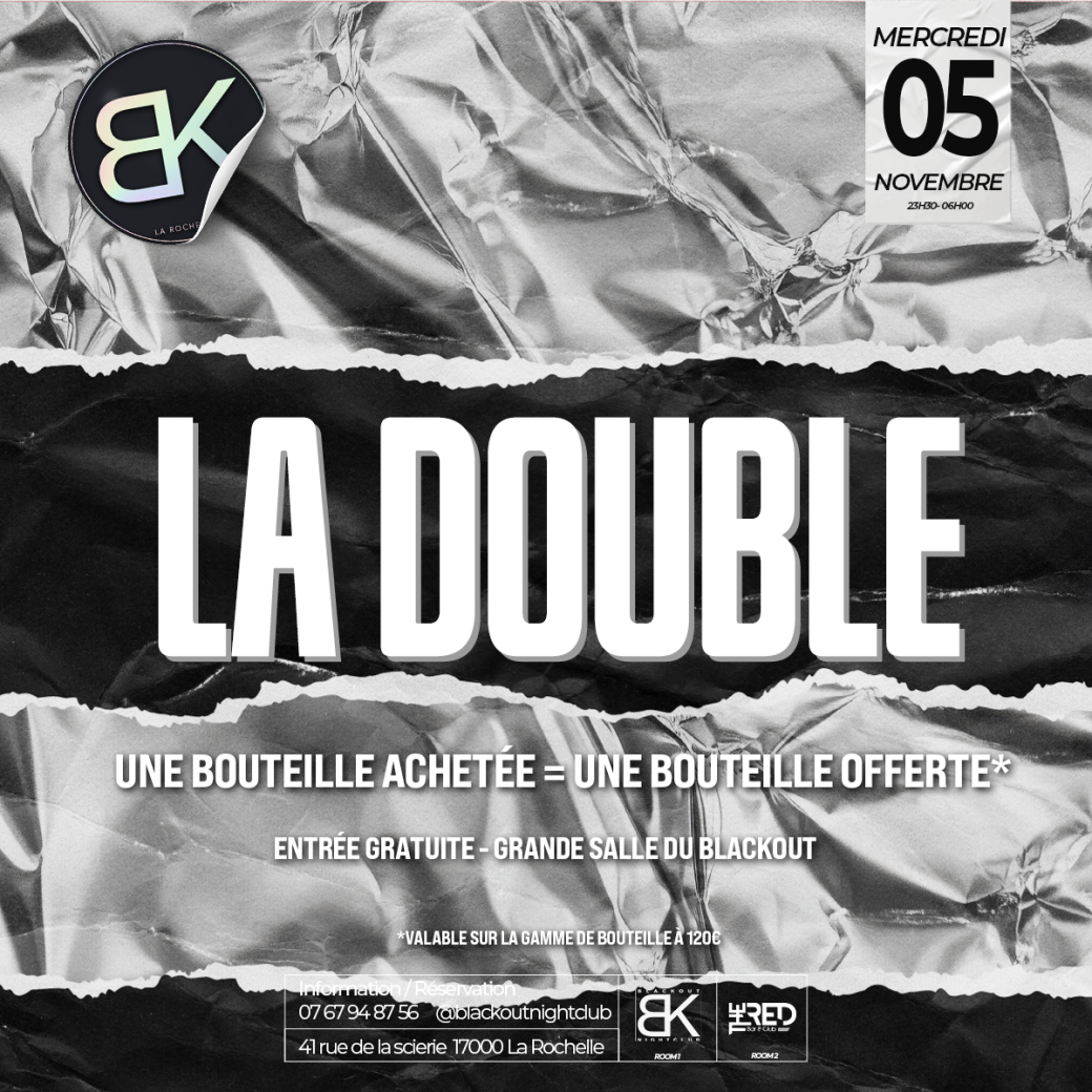2025-11-05 23:30:002025-11-06 06:00:00Europe/ParisMercredi 05 Novembre - La DoubleReservations on : https://www.billetweb.fr/mercredi-05-novembre-la-double