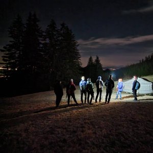 Là-haut, une fondue suisse bien méritée nous attend (vers 20h45) dans la chaleur du poêle à bois et une ambiance conviviale sous les étoiles. Après le repas, place à la descente en courant (5 km) pour un retour vers 22h30.