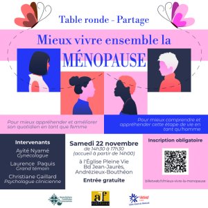 2025-11-22 14:30:002025-11-22 17:30:00Europe/ParisMieux vivre la ménopause Reservations on : https://www.billetweb.fr/mieux-vivre-la-menopause