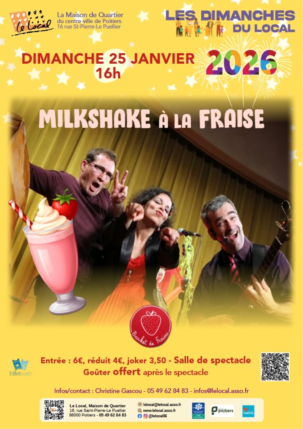 2026-01-25 16:00:002026-01-25 18:00:00Europe/Paris"Milkshake à la Fraise" par La Cie Barket de FraisesReservations on : https://www.billetweb.fr/milkshake-a-la-fraise-par-la-cie-barkette-de-fraises
