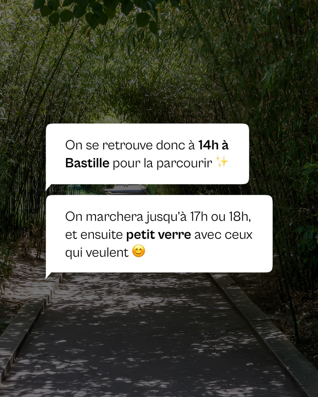 Au programme, on se retrouve à Bastille à 14h, et on ira jusqu'au bois de Vincennes via la Coulée Verte :)