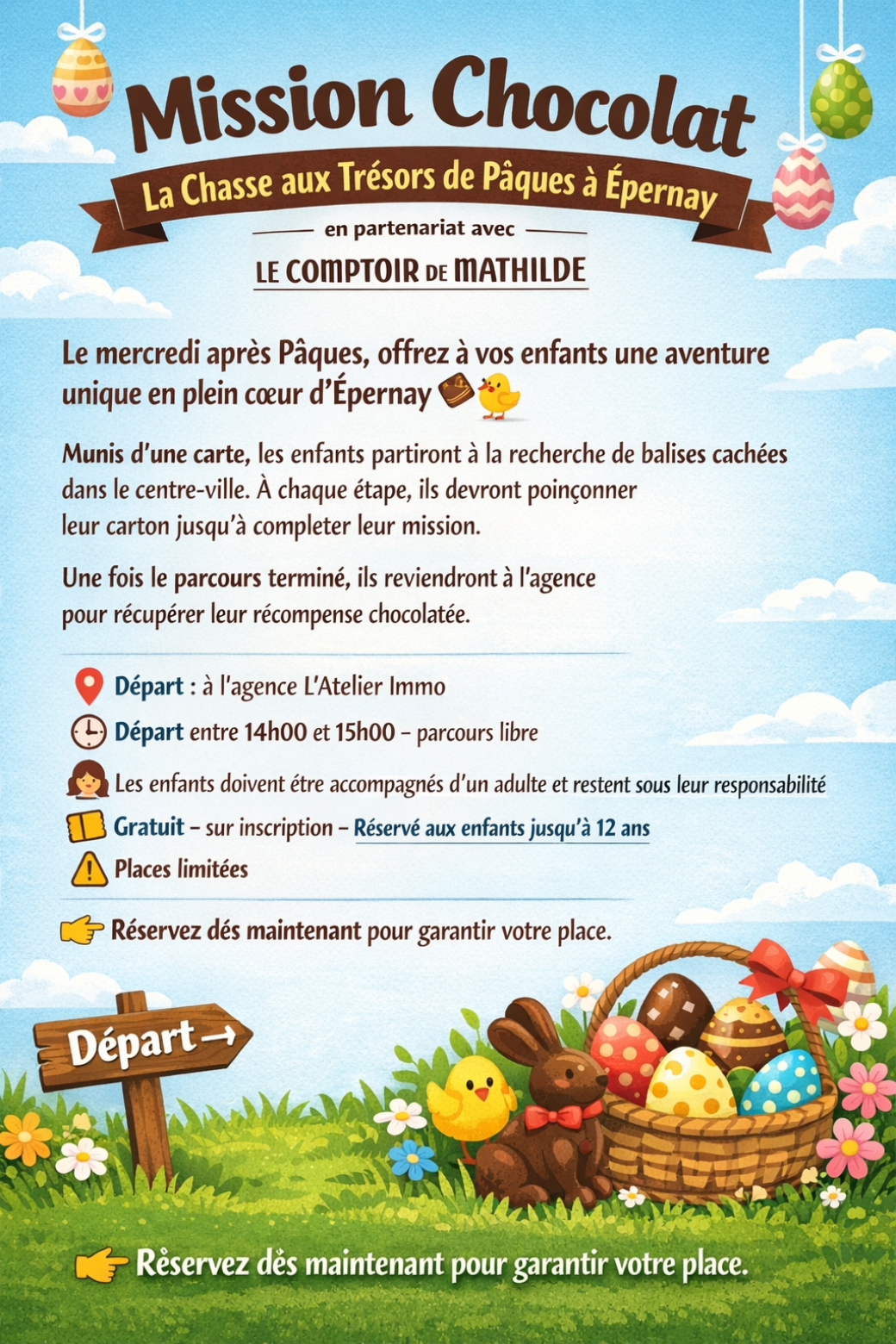 2026-04-08 14:00:002026-04-08 15:00:00Europe/ParisMission Chocolat – La Chasse aux Trésors de PâquesReservations on : https://www.billetweb.fr/mission-chocolat-la-chasse-aux-tresors-de-paques