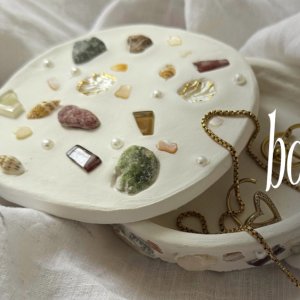Lors de cet atelier, tu réaliseras ta boîte à bijoux en argile auto-durcissante : tu façonnes ta pièce, puis tu viens la décorer avec une mosaïque et d’autres matières : perles, roches, pierres décoratives, coquillages et éléments colorés à incruster dans l’argile... Si tu le souhaites, tu repars quelques petits pots pour vernir ta pièce grâce au vernis glassificateur