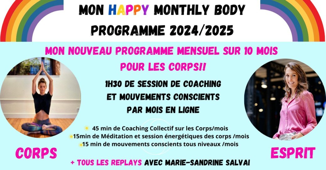 Commencé en Septembre 2024, rejoins mon Nouveau programme Mensuel Collectif en ligne HAPPY MONTHLY BODY!!